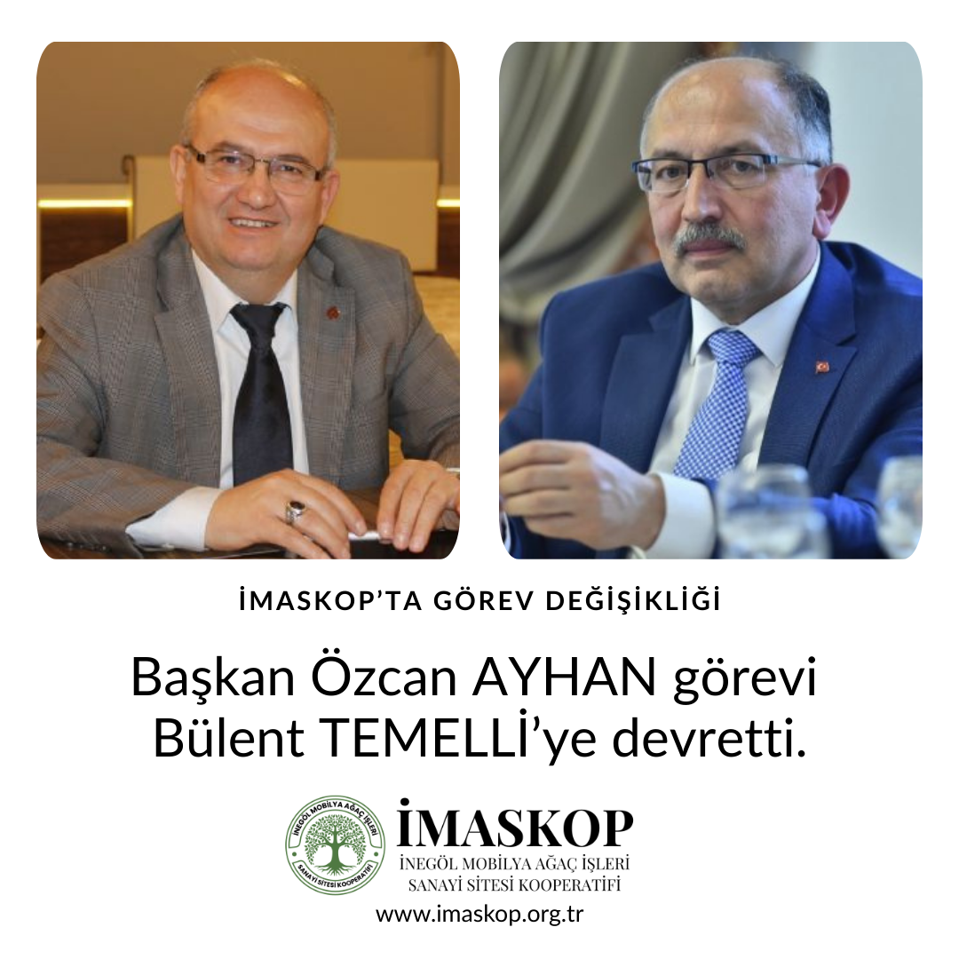 İnegöl Mobilya Ağaç İşleri Küçük Sanayi Sitesi Yapı Kooperatifi (İMASKOP) Yönetim Kurulu Başkanlığı görevinde değişikliğe gidildi.